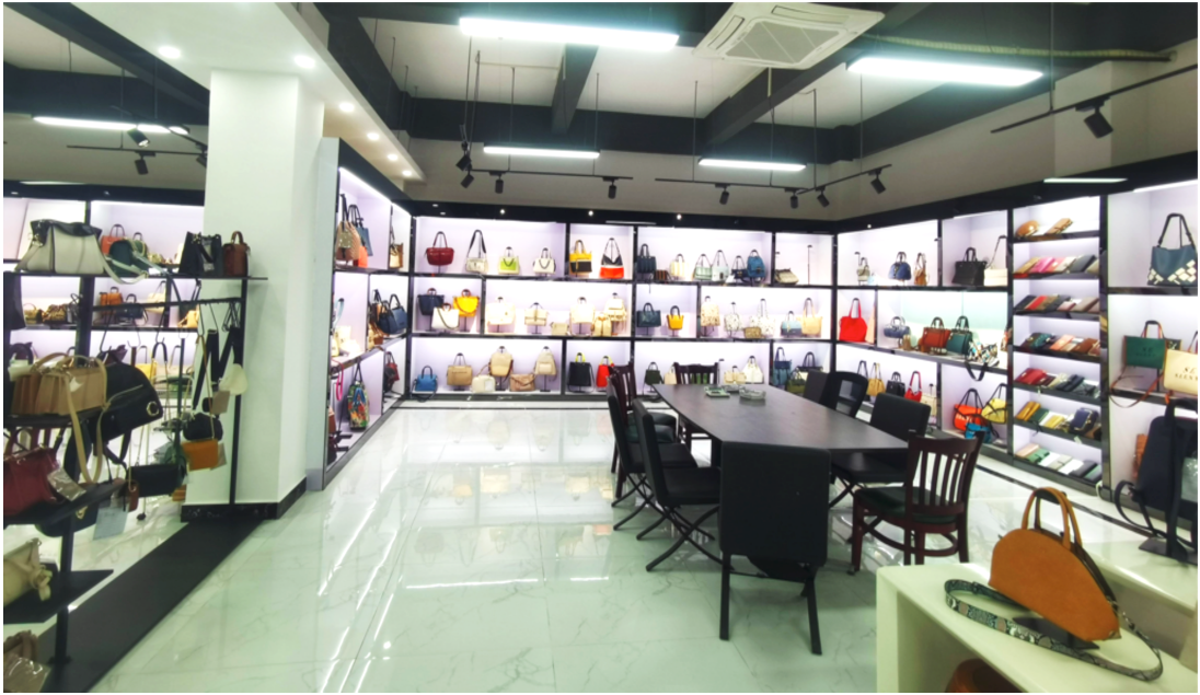我们拥有500平方的展厅,陈列了各种各样的款式供客人挑选。瑞威皮具竭诚欢迎国内外人士参观和咨询。